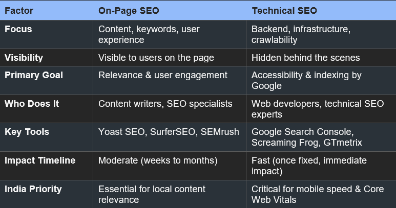When it comes to technical SEO vs on-page SEO, many Indian businesses fall into predictable traps: